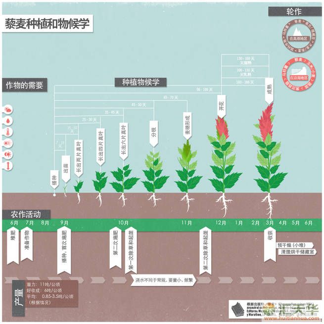土壤:排水良好的壤土,有机质含量高,坡度适中,养分含量中等。尽管可以种植在碱性(高达pH 9)和酸性(高达pH 4.5)土壤,但是藜麦喜欢中性土壤,产量和质量也较好。